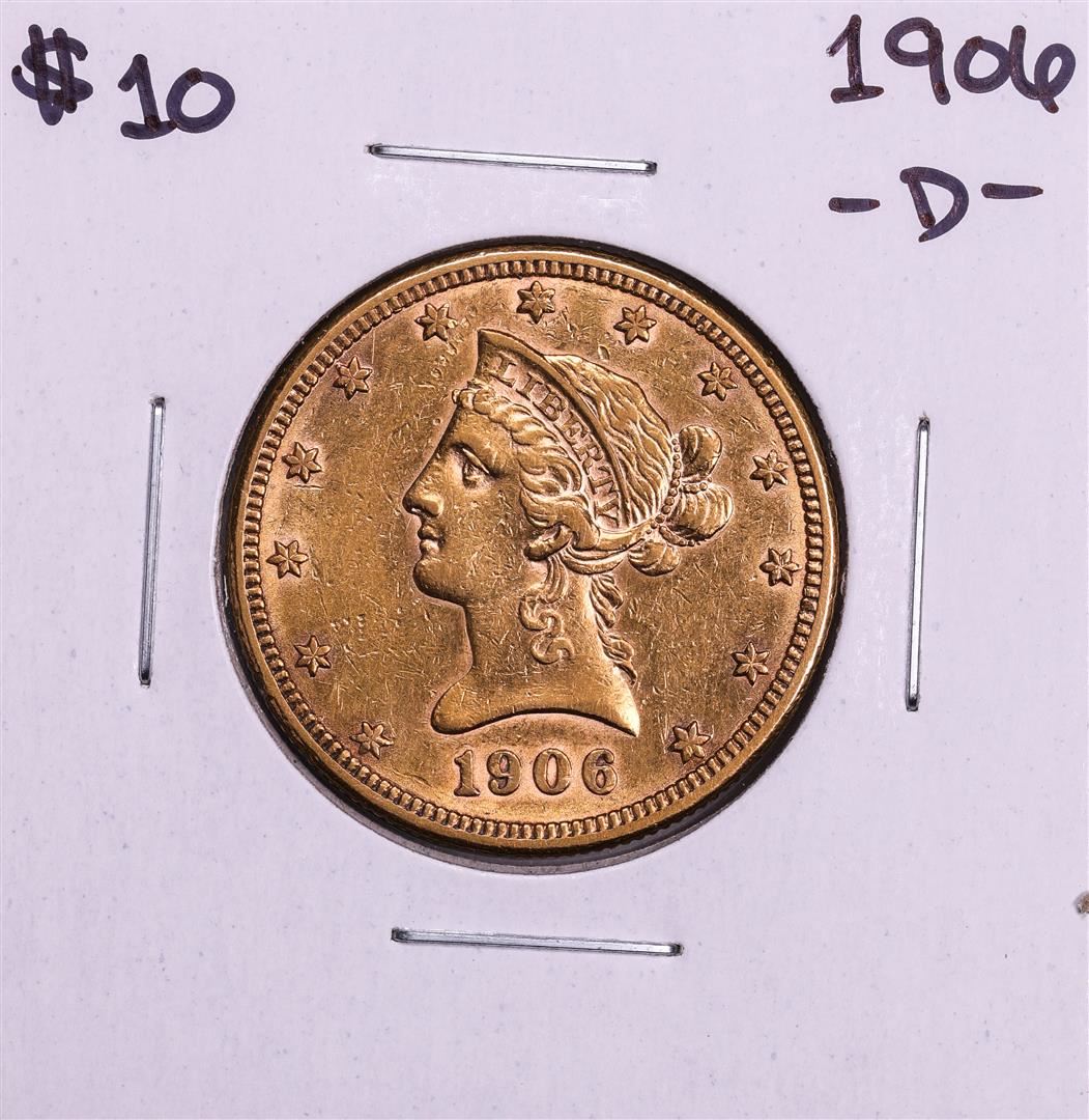 One 1906-D $10 Liberty Head Eagle Gold Coin.