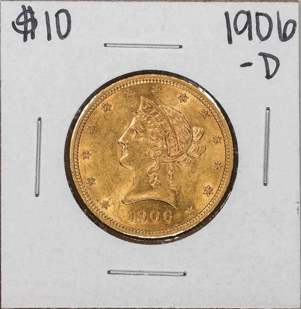One 1906-D $10 Liberty Head Eagle Gold Coin.