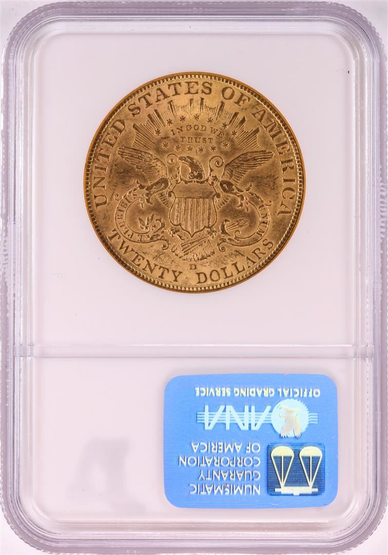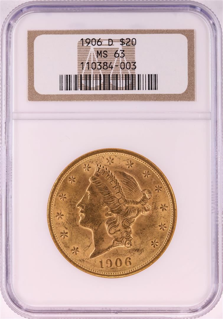 One 1906-D $20 Liberty Head Double Eagle Gold Coin NGC MS63. NGC Certified.