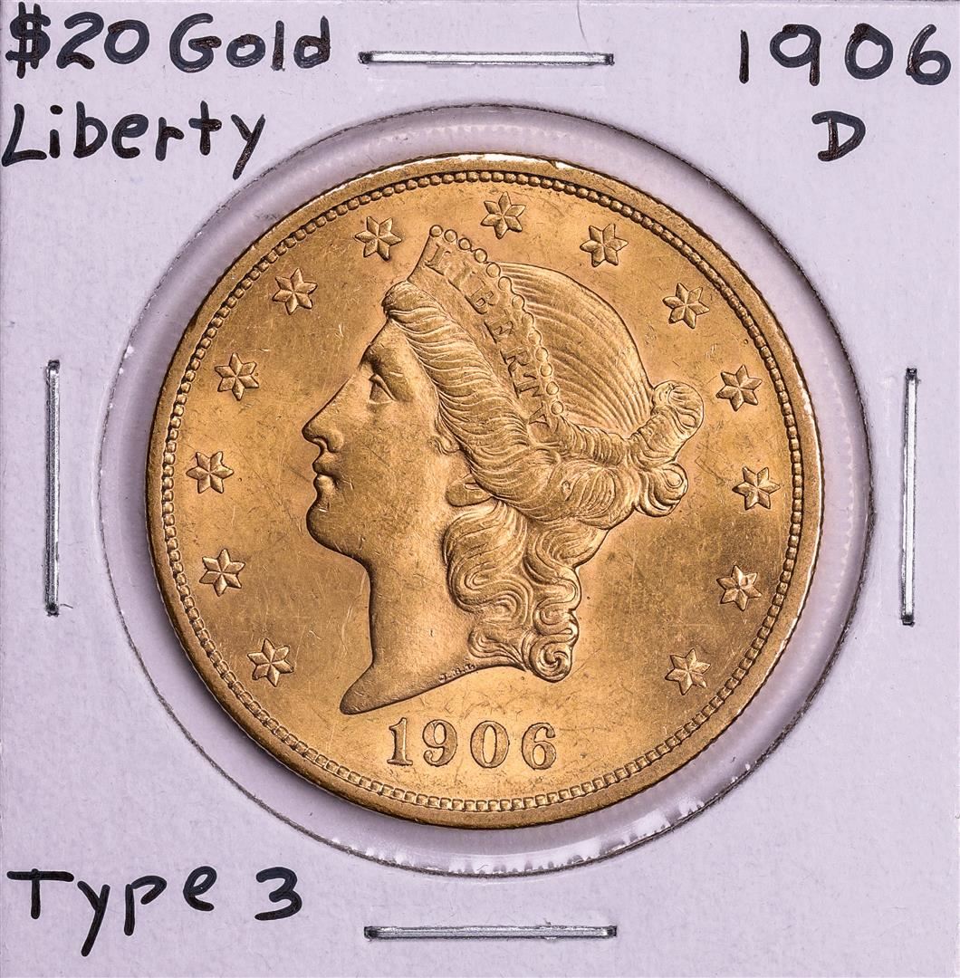 One 1906-D $20 Liberty Head Double Eagle Gold Coin.