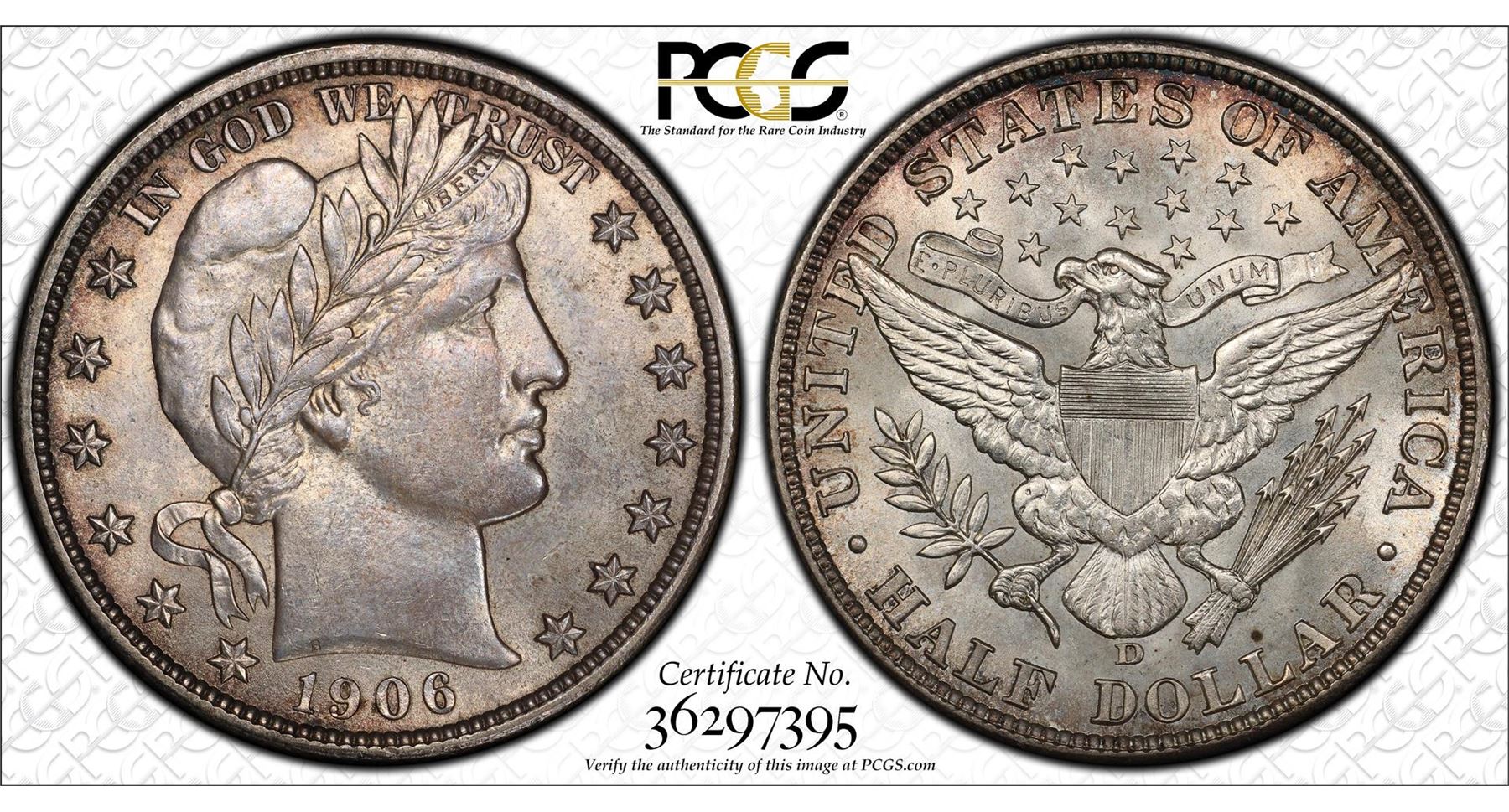 One 1906-D Barber Half Dollar Coin PCGS MS64. PCGS Graded.