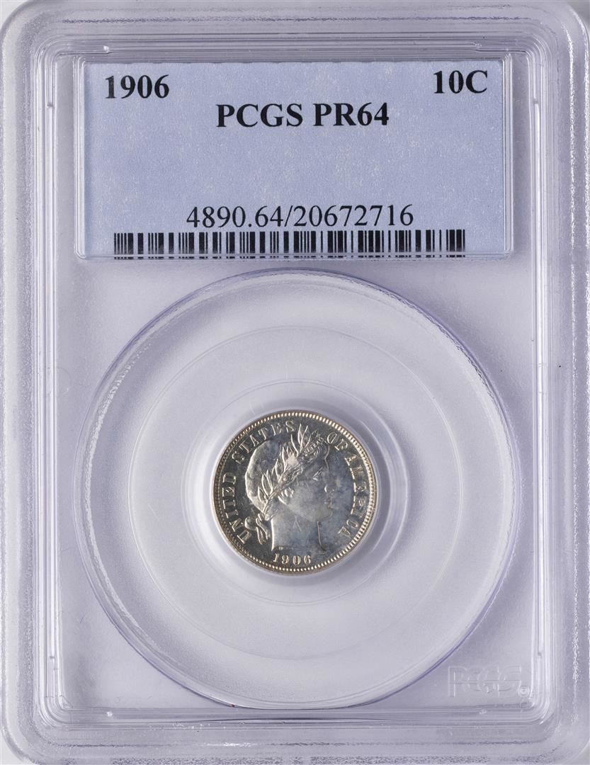 One 1906 Proof Barber Dime Coin PCGS PR64. PCGS Graded.