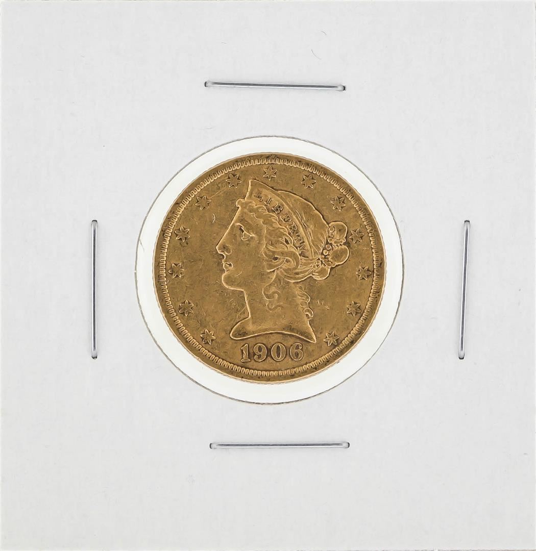 One 1906-S $5 Liberty Head Half Eagle Gold Coin.