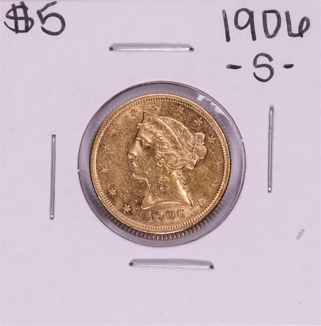 One 1906-S $5 Liberty Head Half Eagle Gold Coin.