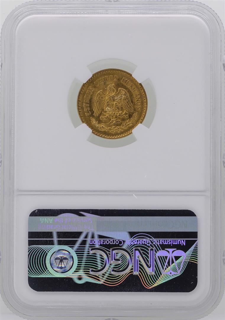 One 1906M Mexico 5 Pesos Gold Coin NGC MS62. NGC Certified.
