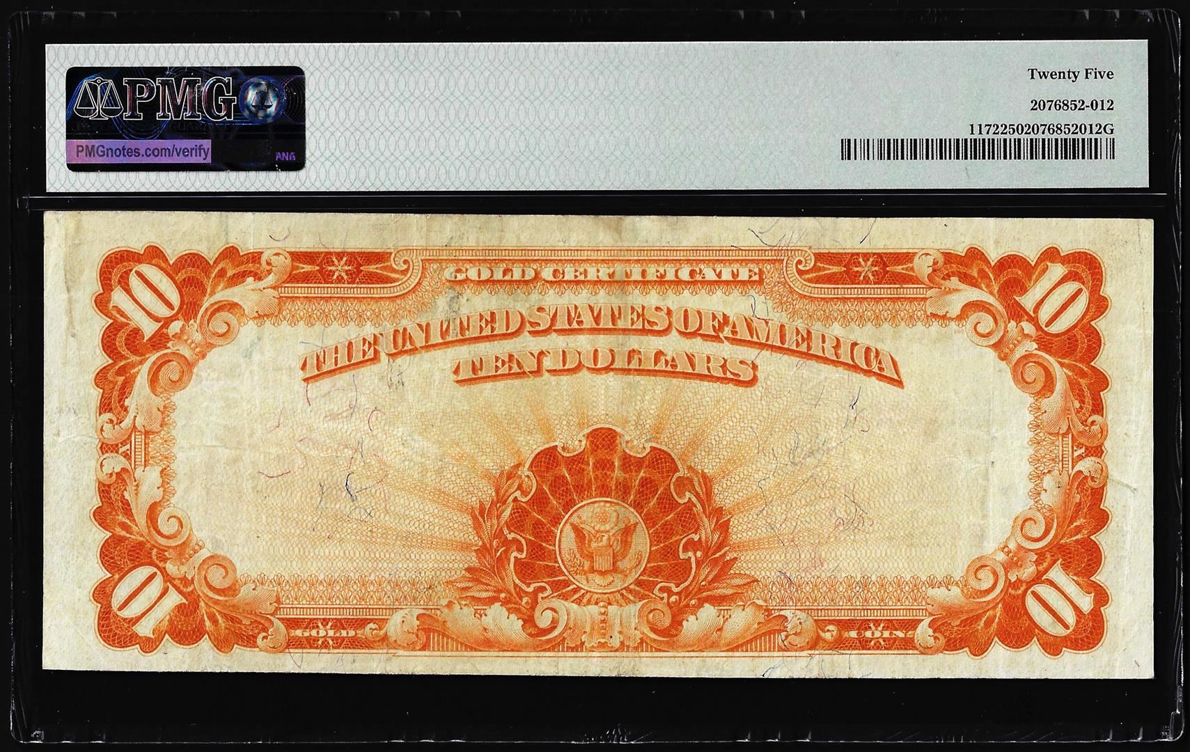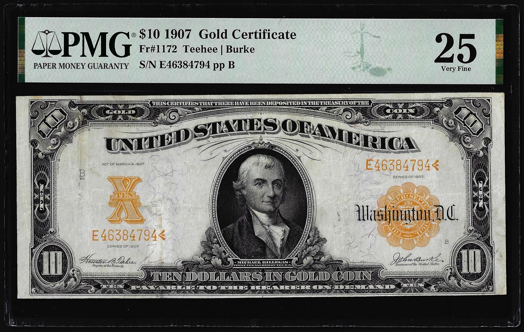 One 1907 $10 Gold Certificate Note Fr.1172 PMG Very Fine 25. PMG Certified.