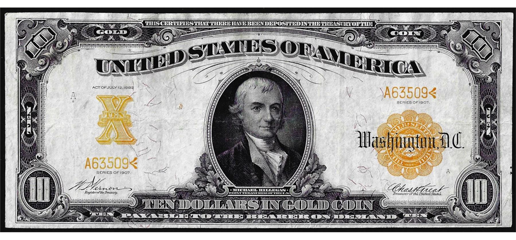 One 1907 $10 Gold Certificate Note.