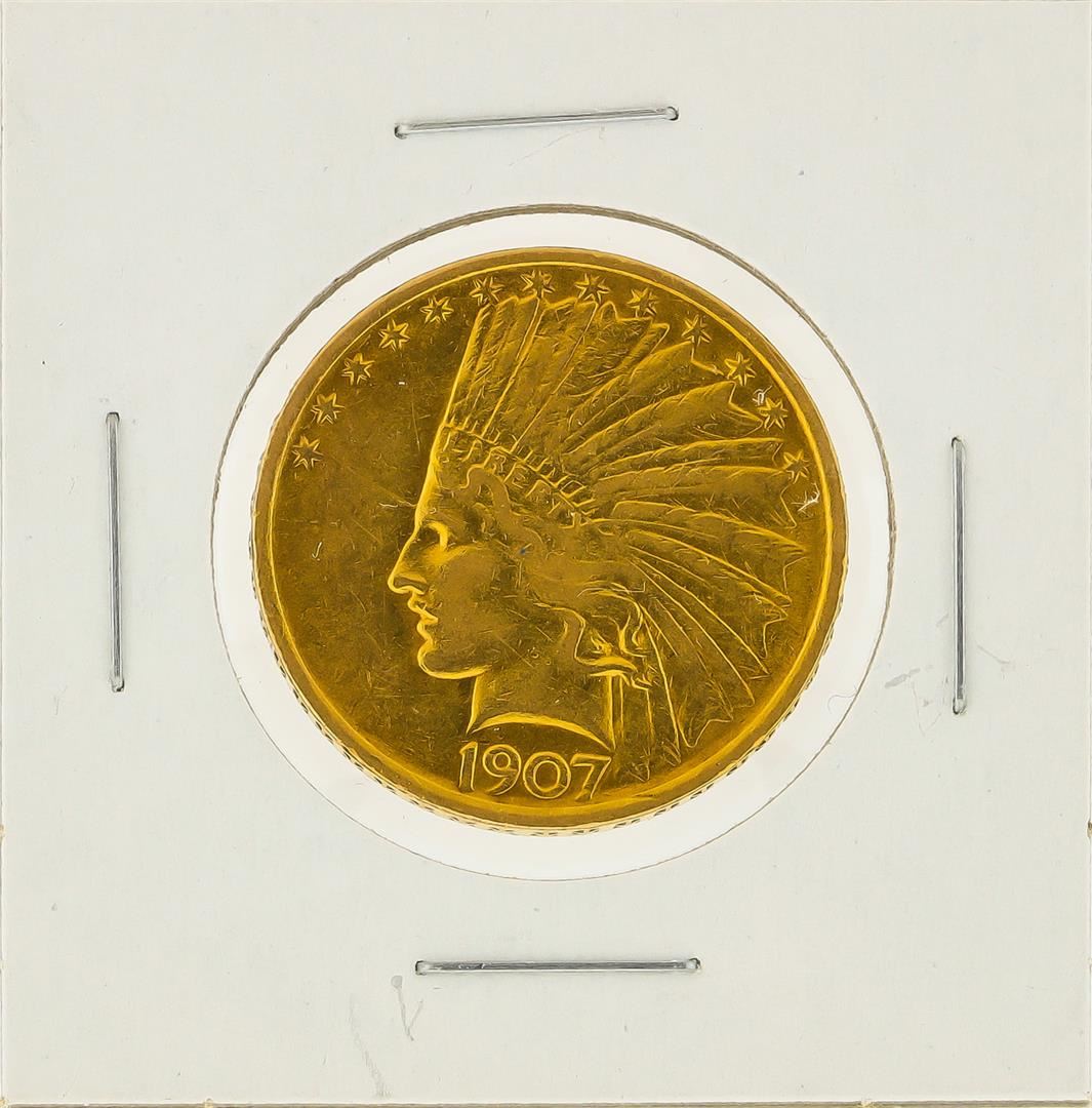 One 1907 $10 Indian Head Eagle Gold Coin.