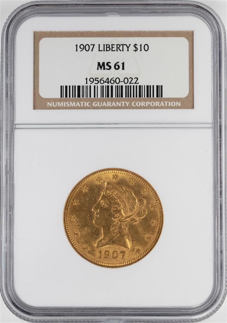 One 1907 $10 Liberty Head Eagle Gold Coin NGC MS61. NGC Certified.