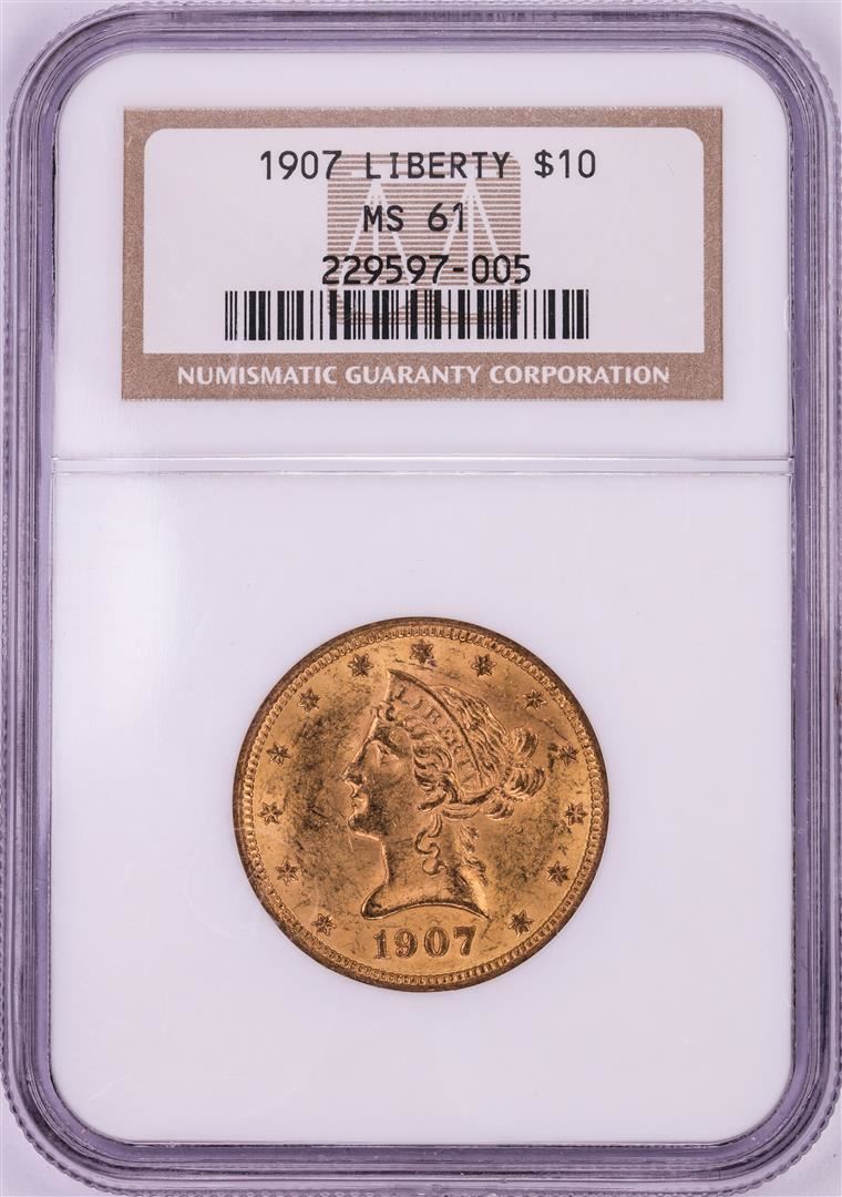 One 1907 $10 Liberty Head Eagle Gold Coin NGC MS61. NGC Certified.