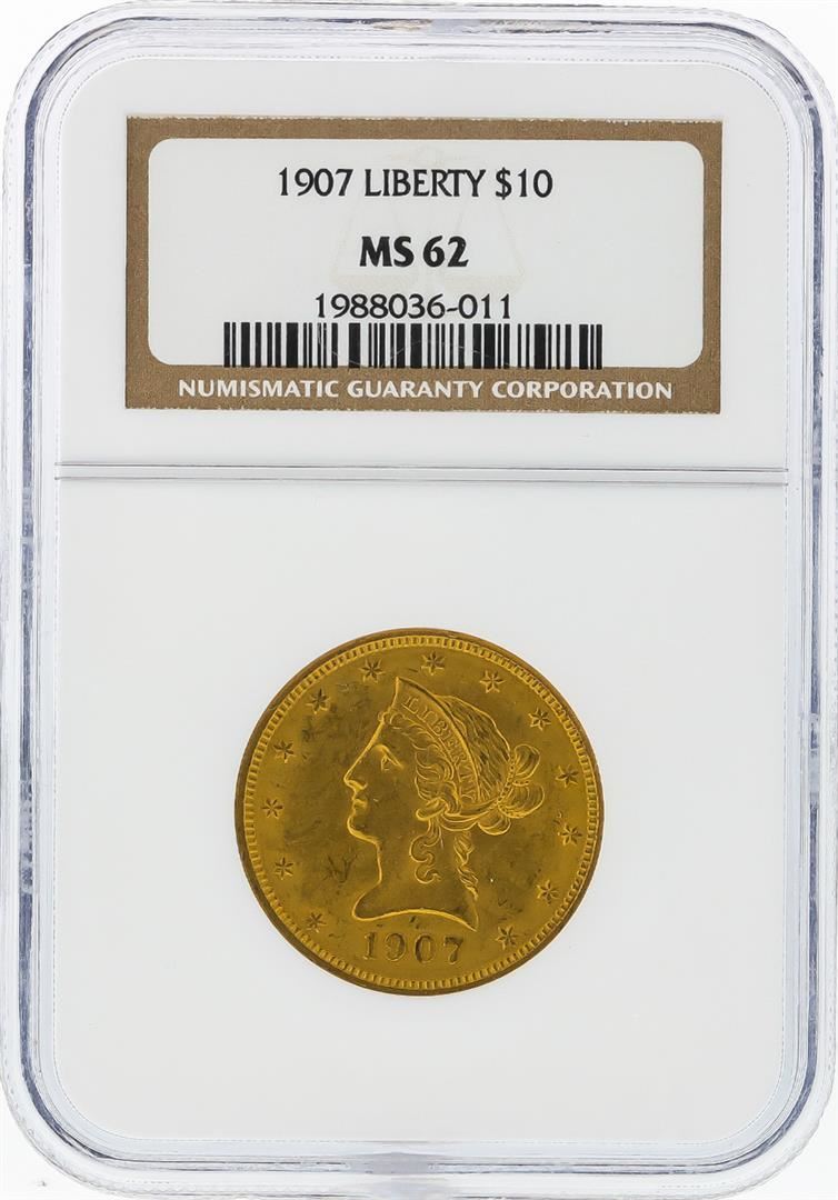 One 1907 $10 Liberty Head Eagle Gold Coin NGC MS62. NGC Certified.