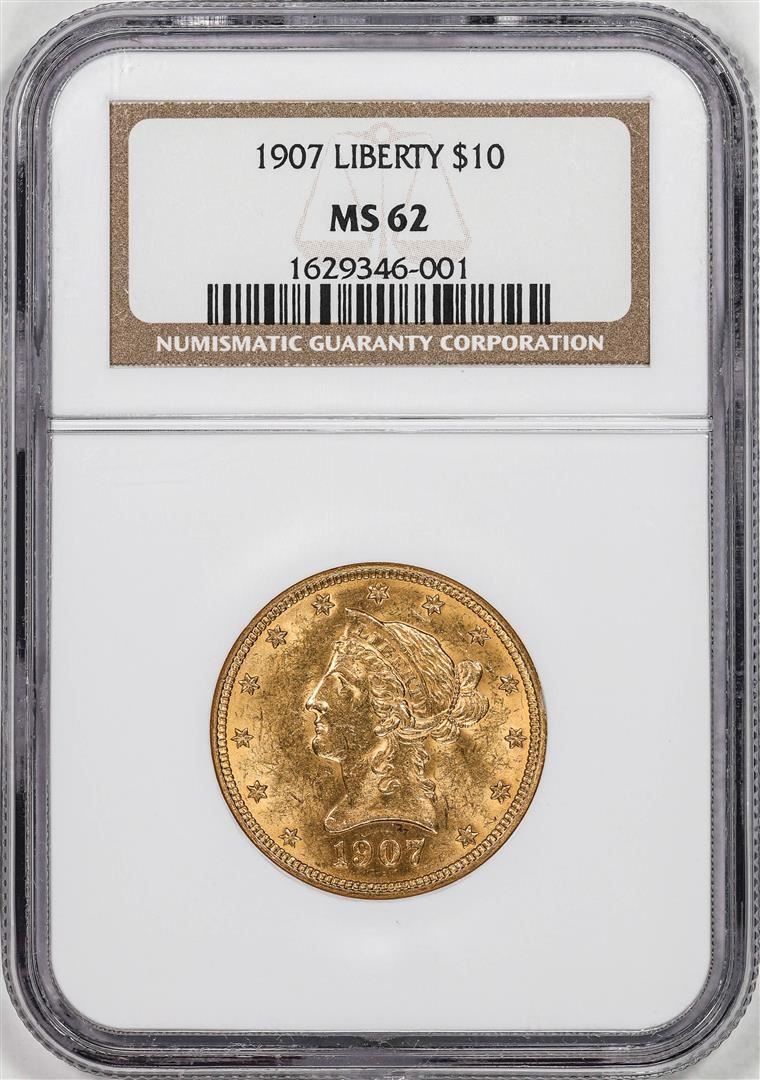 One 1907 $10 Liberty Head Eagle Gold Coin NGC MS62. NGC Certified.