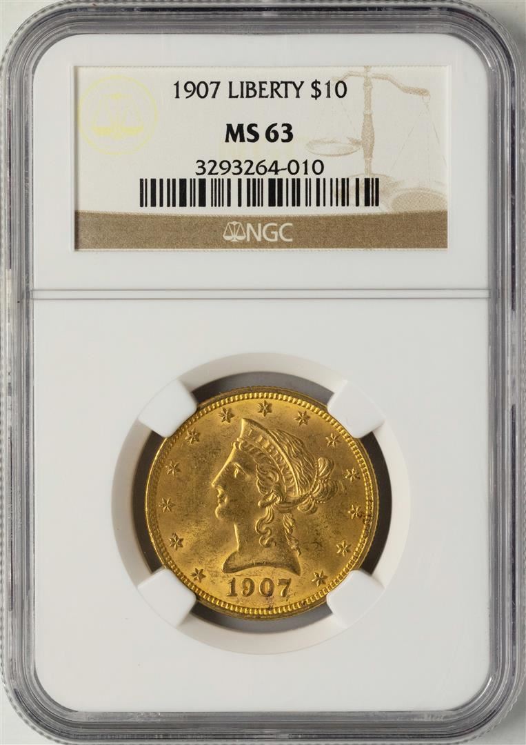 One 1907 $10 Liberty Head Eagle Gold Coin NGC MS63. NGC Certified.