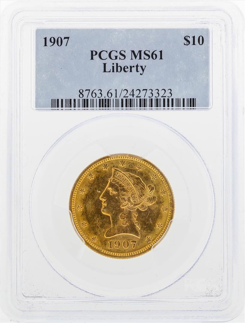 One 1907 $10 Liberty Head Eagle Gold Coin PCGS MS61. PCGS Graded.