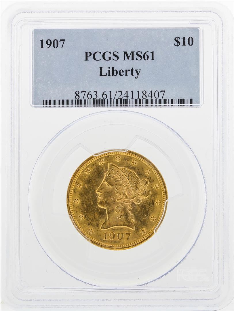 One 1907 $10 Liberty Head Eagle Gold Coin PCGS MS61. PCGS Graded.