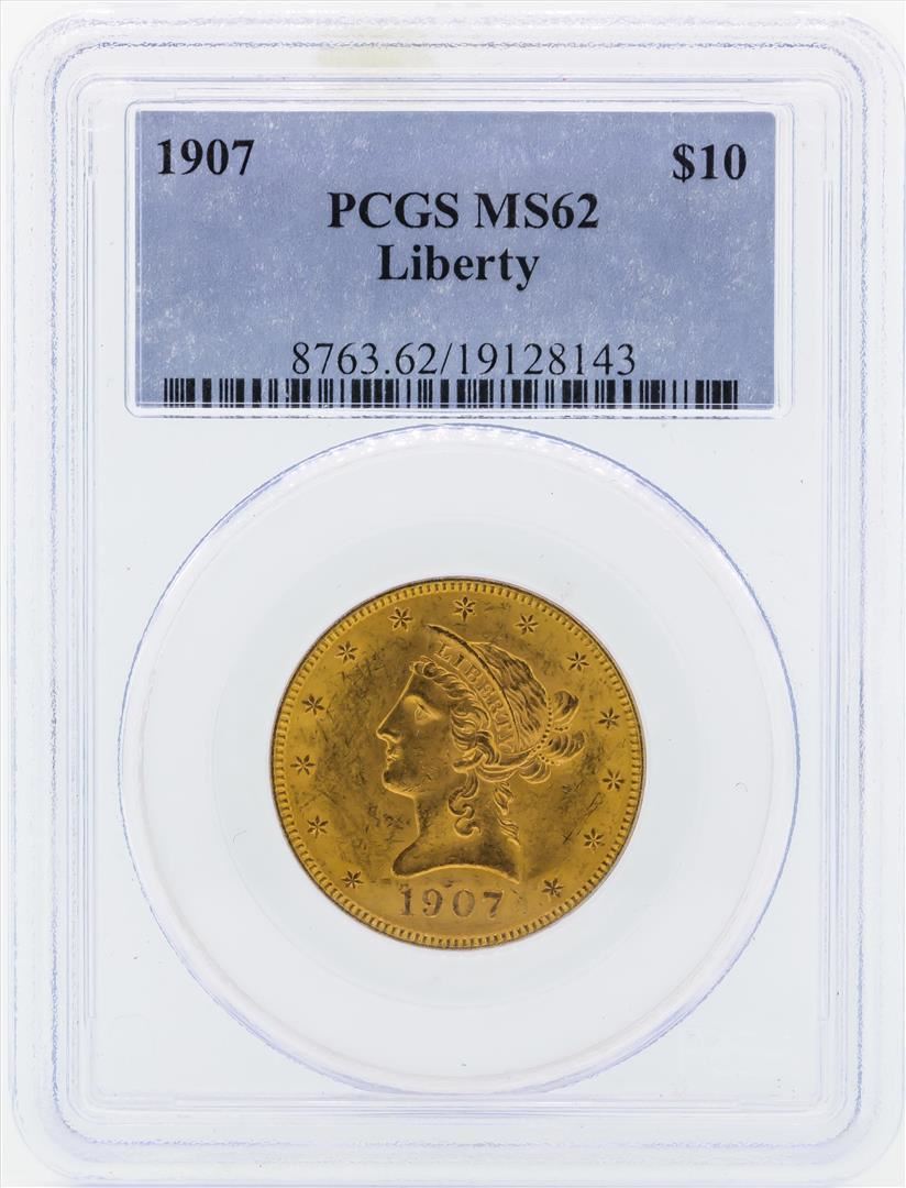 One 1907 $10 Liberty Head Eagle Gold Coin PCGS MS62. PCGS Graded.