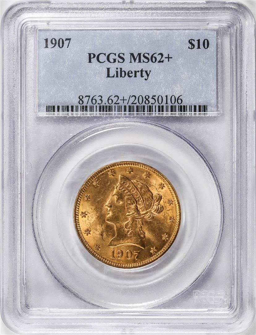 One 1907 $10 Liberty Head Eagle Gold Coin PCGS MS62+. PCGS Graded.