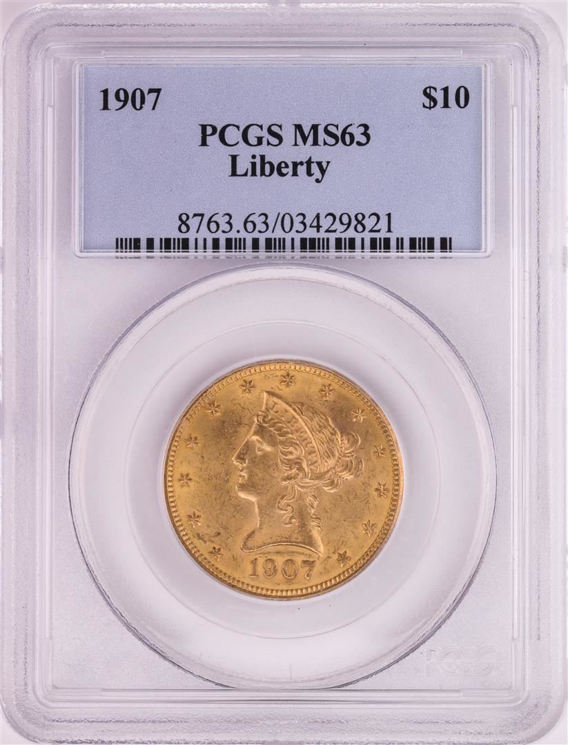 One 1907 $10 Liberty Head Eagle Gold Coin PCGS MS63. PCGS Graded.