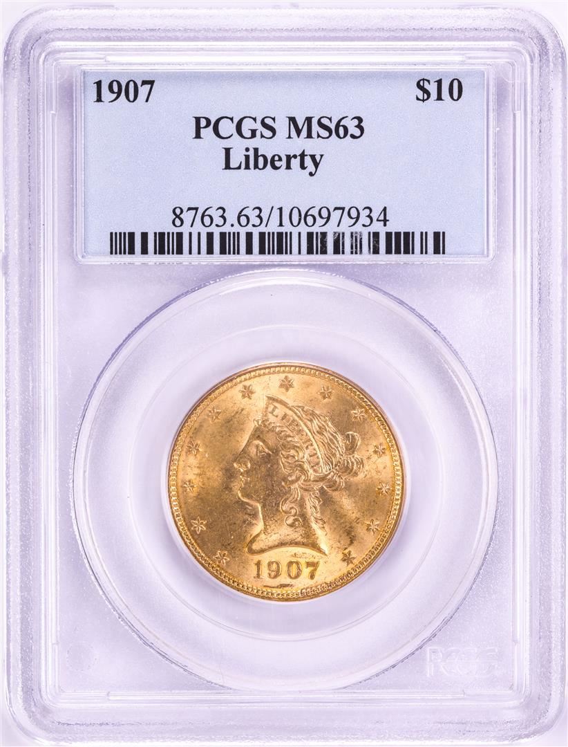 One 1907 $10 Liberty Head Eagle Gold Coin PCGS MS63. PCGS Graded.