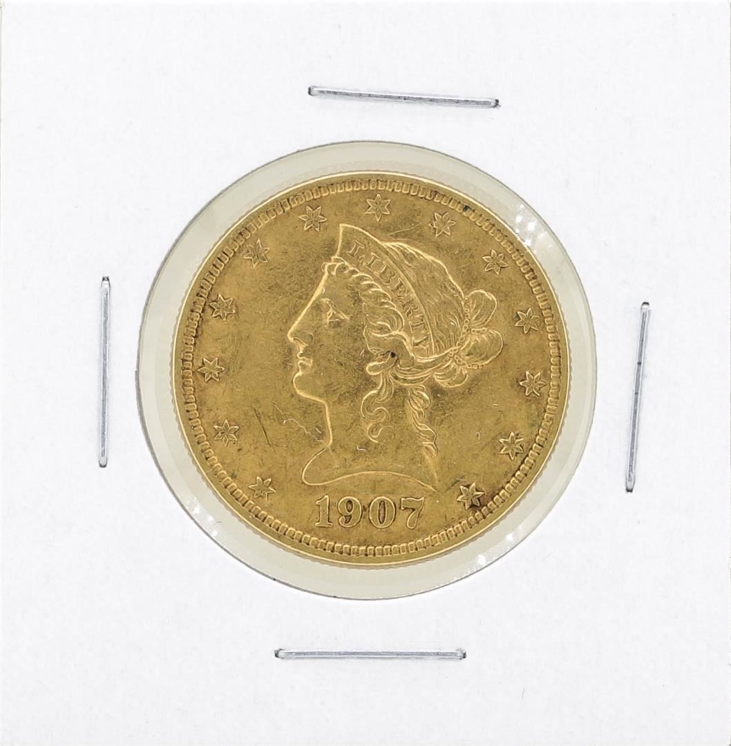 One 1907 $10 Liberty Head Eagle Gold Coin.