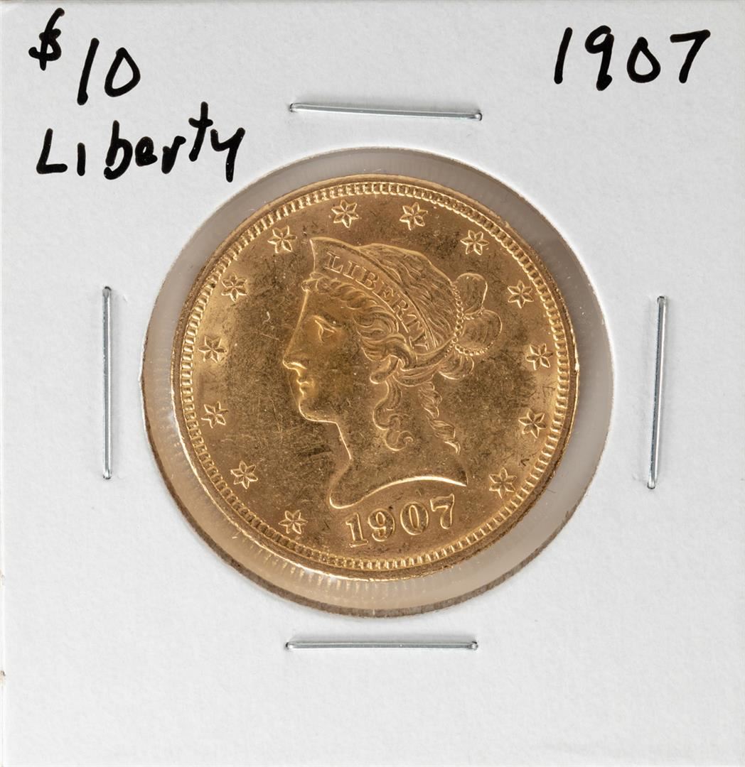 One 1907 $10 Liberty Head Eagle Gold Coin.