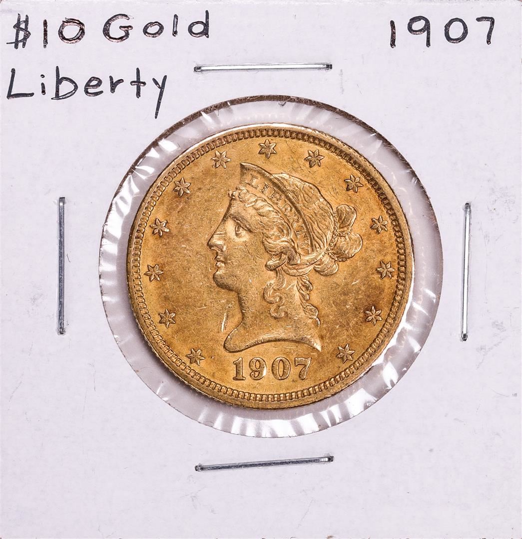 One 1907 $10 Liberty Head Eagle Gold Coin.