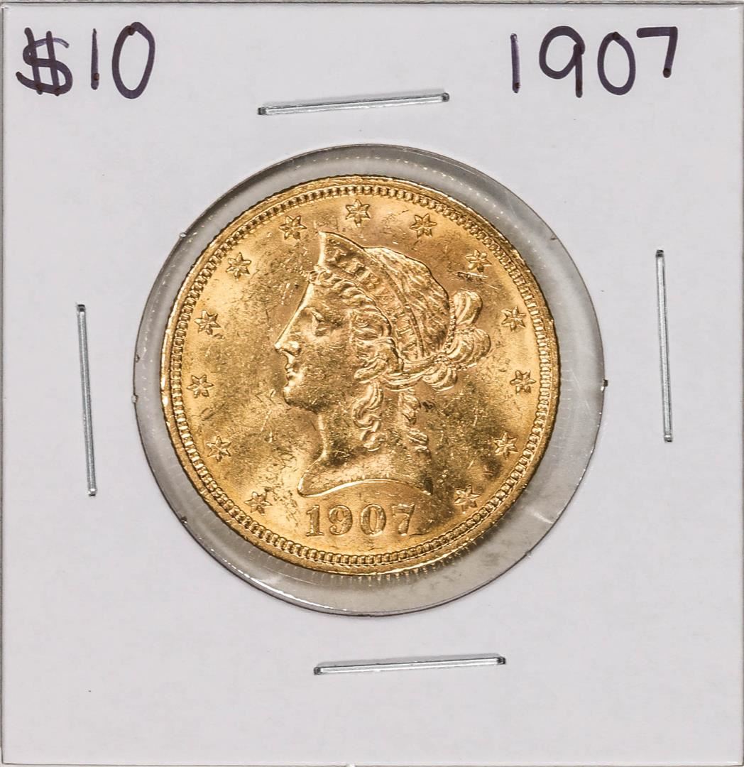 One 1907 $10 Liberty Head Eagle Gold Coin.