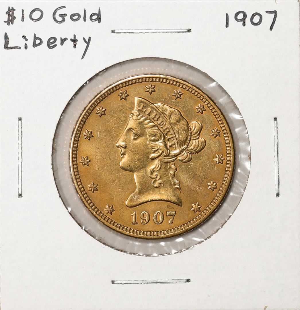 One 1907 $10 Liberty Head Eagle Gold Coin.