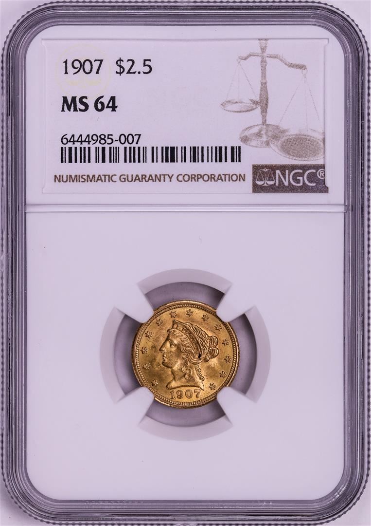 1907 $2 1/2 Liberty Head Quarter Eagle Gold Coin NGC MS64