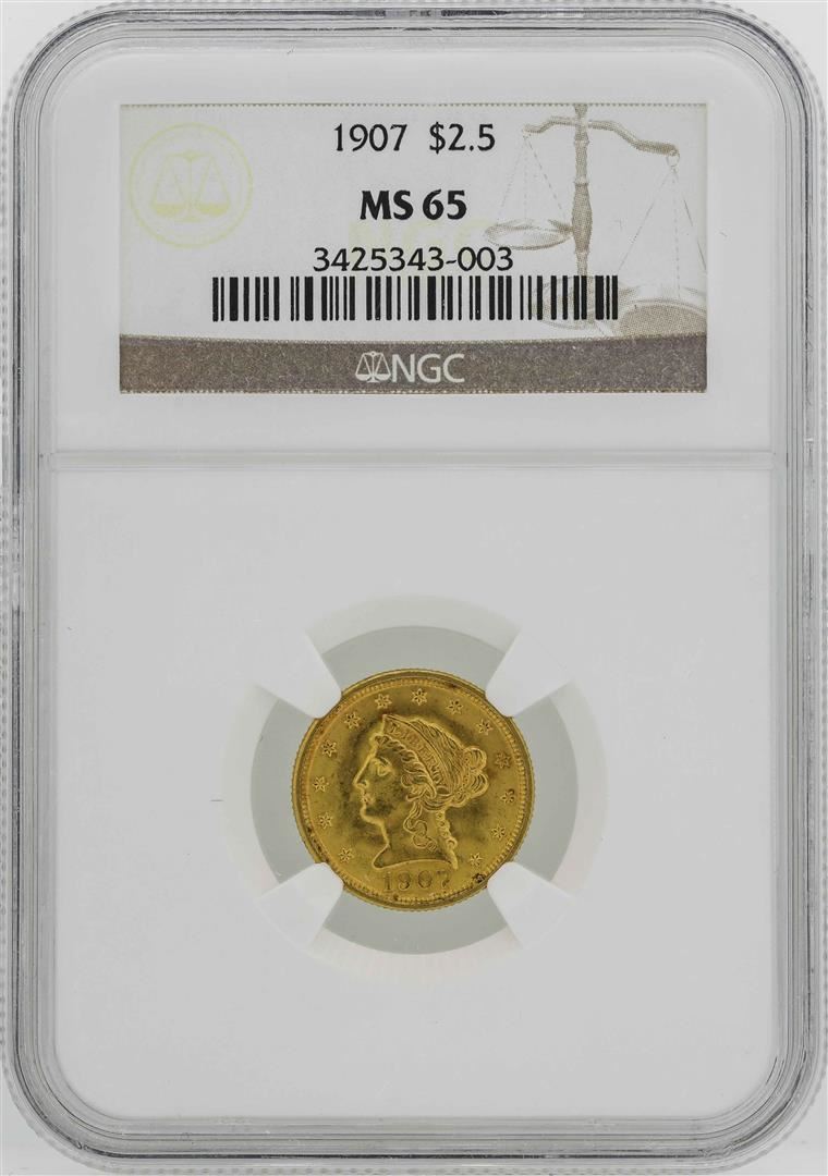 1907 $2 1/2 Liberty Head Quarter Eagle Gold Coin NGC MS65