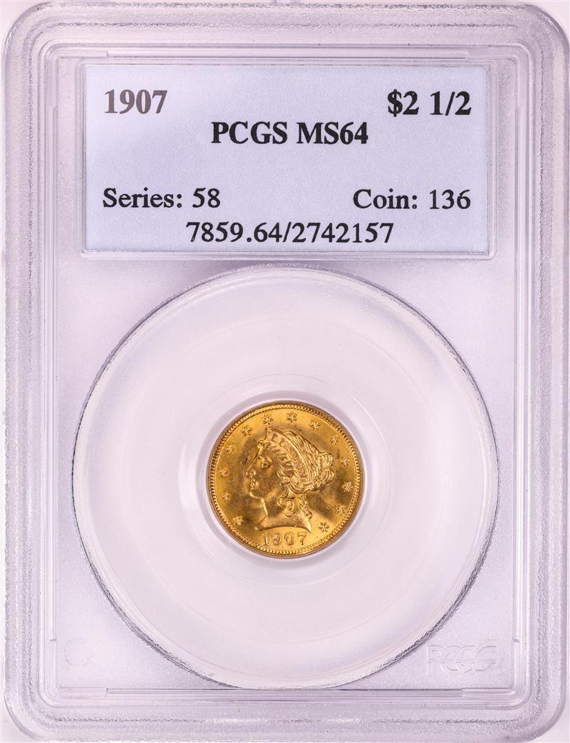 1907 $2 1/2 Liberty Head Quarter Eagle Gold Coin PCGS MS64
