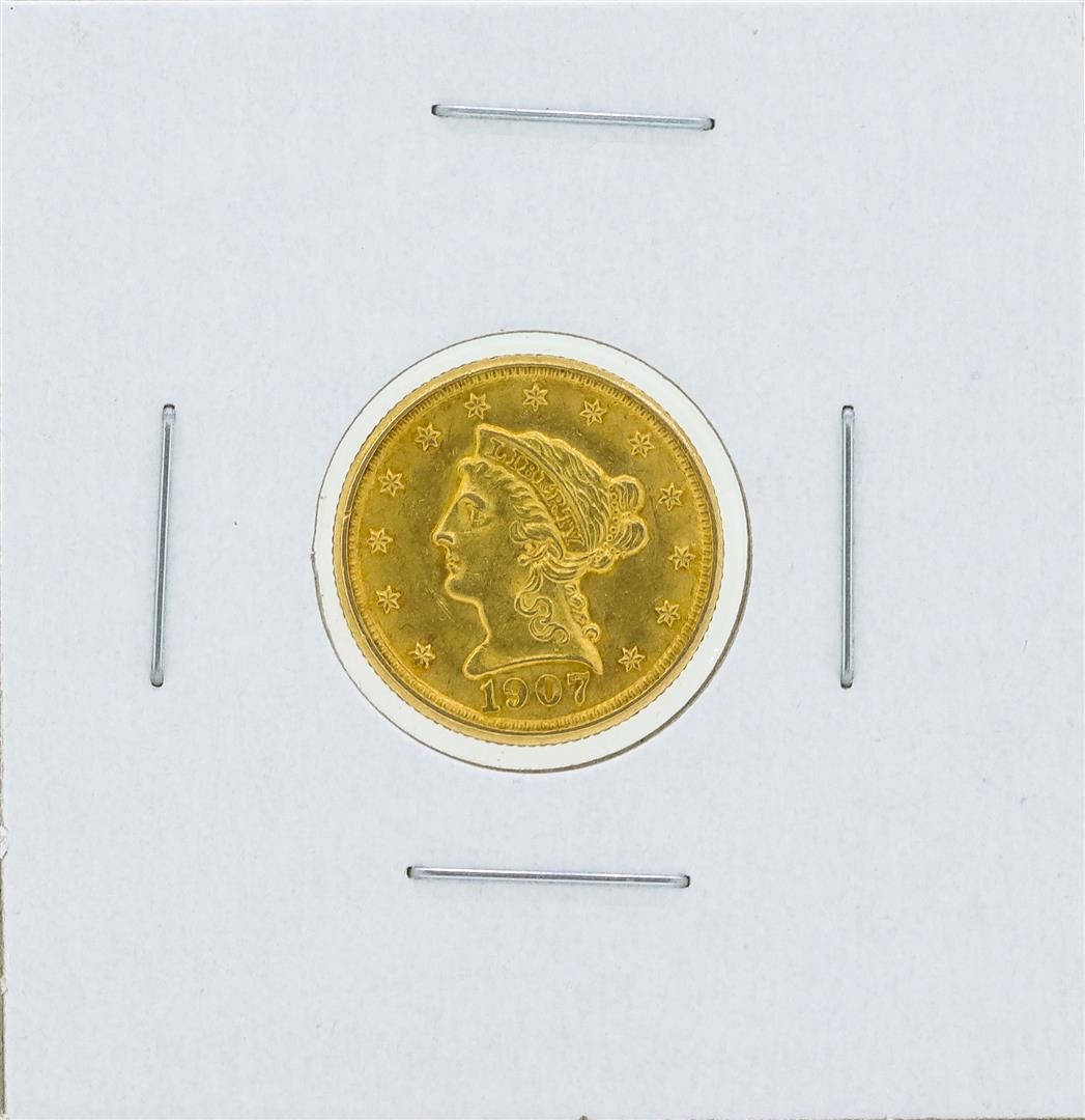 One 1907 $2 1/2 Liberty Head Quarter Eagle Gold Coin.