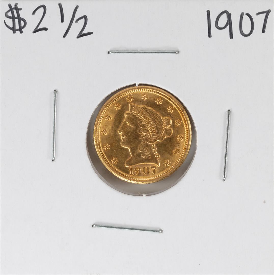 One 1907 $2 1/2 Liberty Head Quarter Eagle Gold Coin.