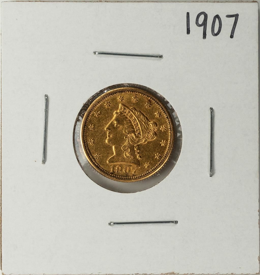 One 1907 $2 1/2 Liberty Head Quarter Eagle Gold Coin.