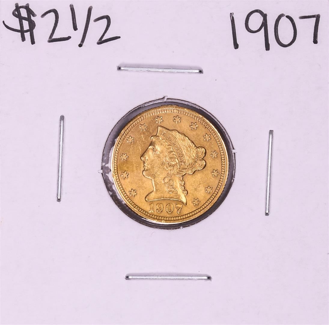 One 1907 $2 1/2 Liberty Head Quarter Eagle Gold Coin.