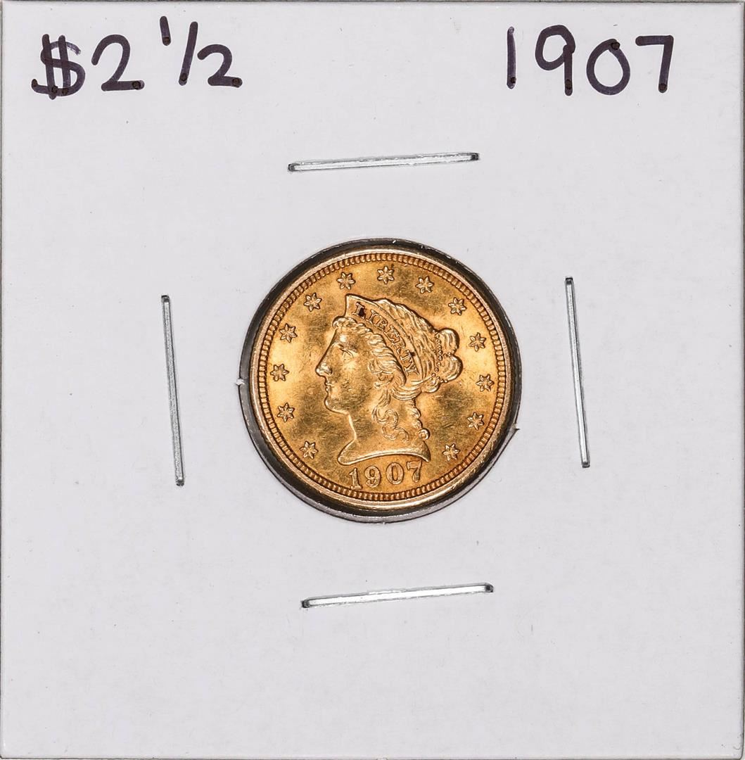 One 1907 $2 1/2 Liberty Head Quarter Eagle Gold Coin.