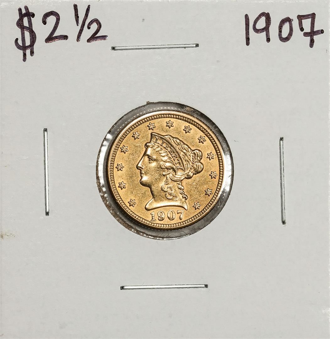 One 1907 $2 1/2 Liberty Head Quarter Eagle Gold Coin.