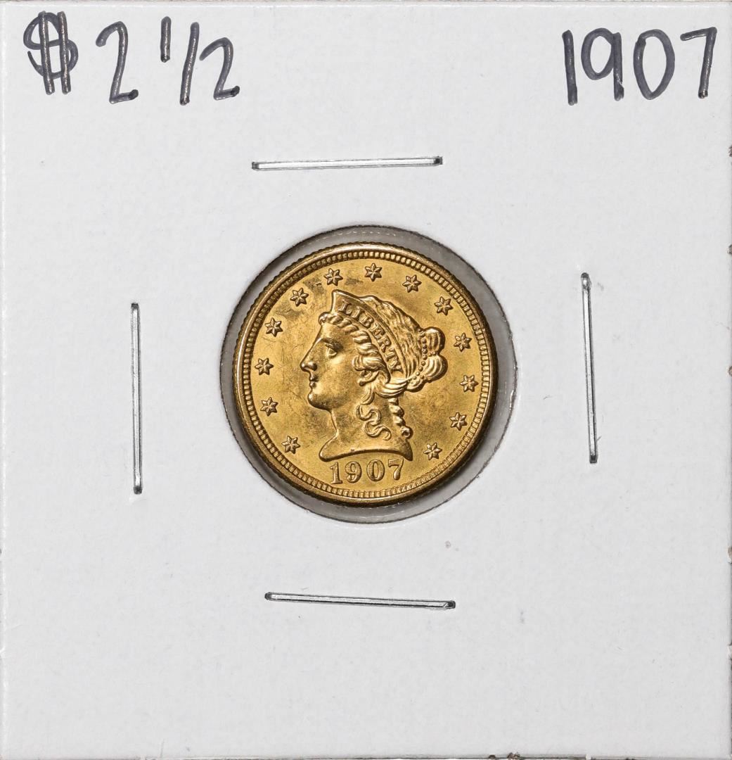 One 1907 $2 1/2 Liberty Head Quarter Eagle Gold Coin.