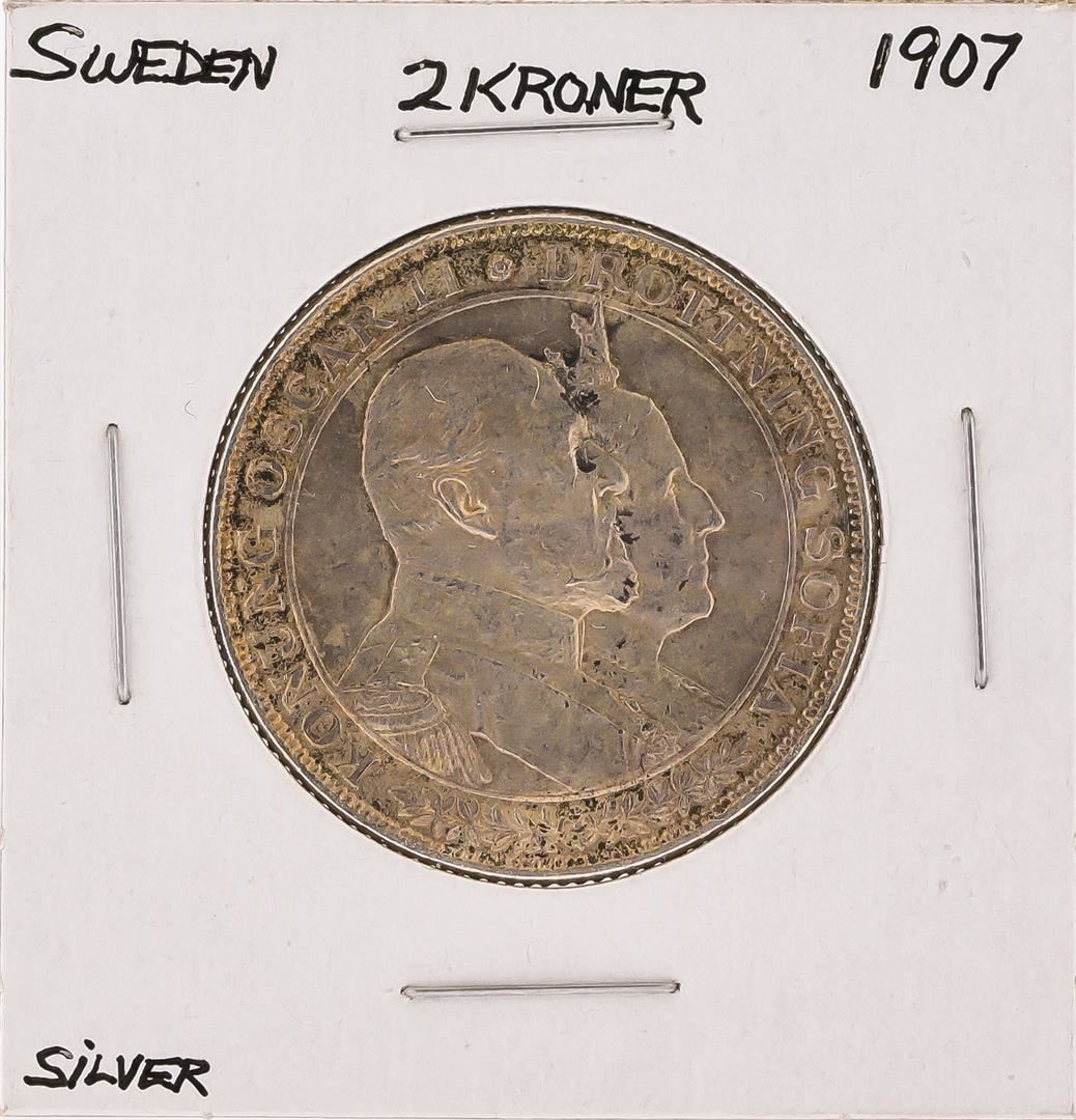 One 1907 2 Kroner Sweden Silver Coin.