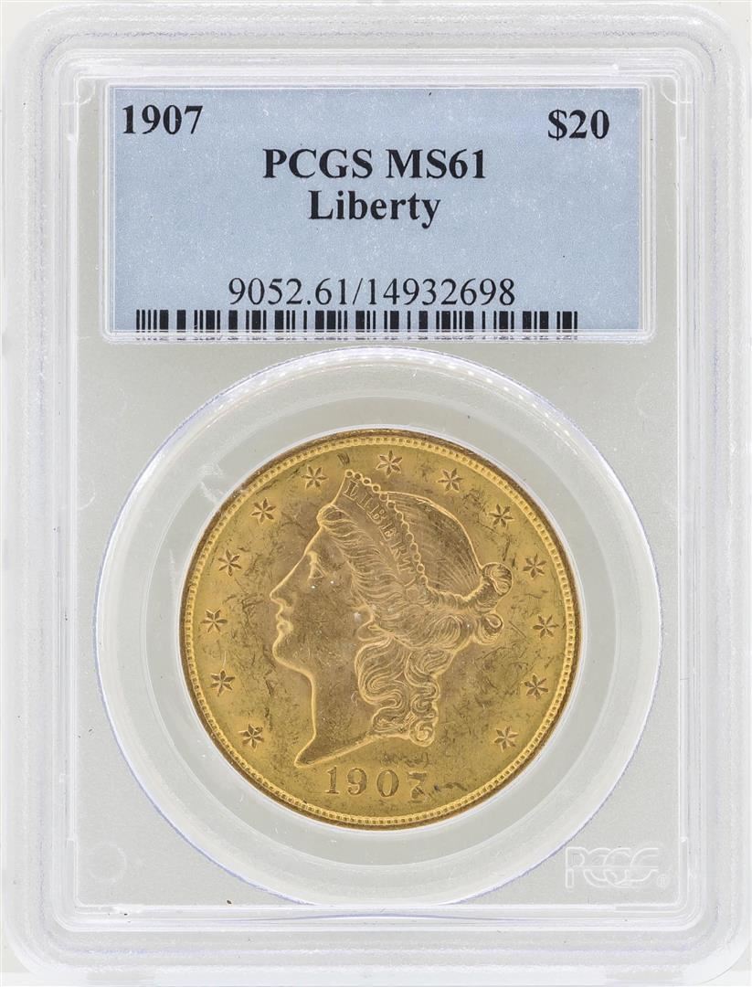 One 1907 $20 Liberty Head Double Eagle Gold Coin PCGS MS61. PCGS Graded.