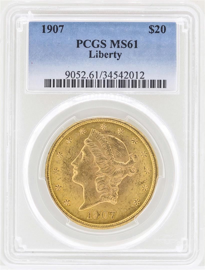 One 1907 $20 Liberty Head Double Eagle Gold Coin PCGS MS61. PCGS Graded.