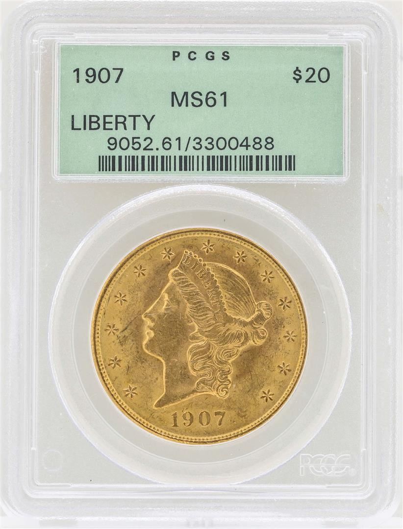 One 1907 $20 Liberty Head Double Eagle Gold Coin PCGS MS61. PCGS Graded.