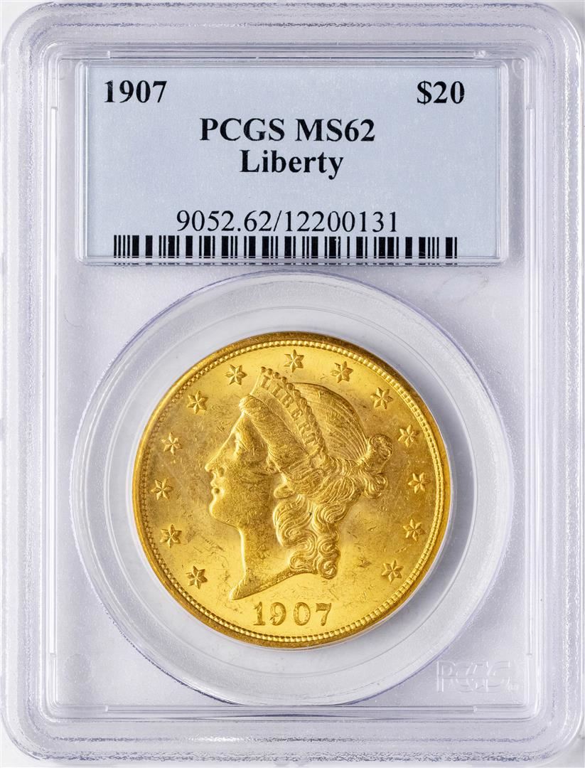 One 1907 $20 Liberty Head Double Eagle Gold Coin PCGS MS62. PCGS Graded.