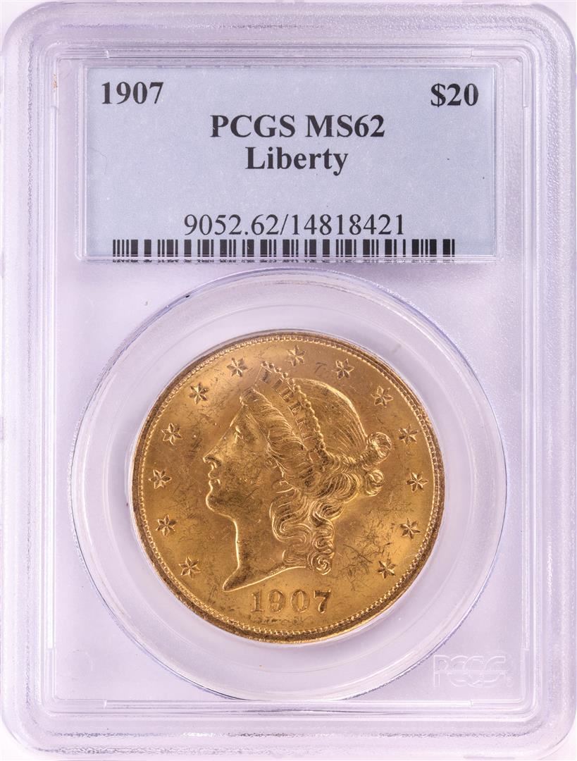 One 1907 $20 Liberty Head Double Eagle Gold Coin PCGS MS62. PCGS Graded.