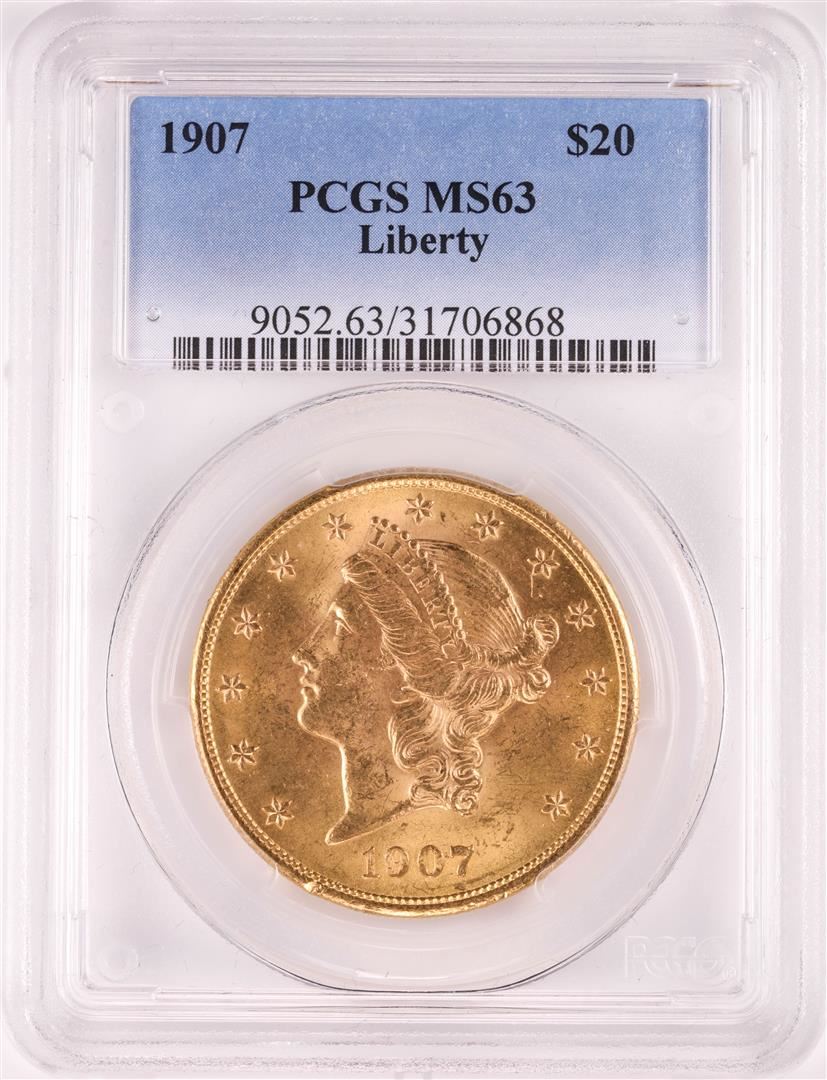 One 1907 $20 Liberty Head Double Eagle Gold Coin PCGS MS63. PCGS Graded.