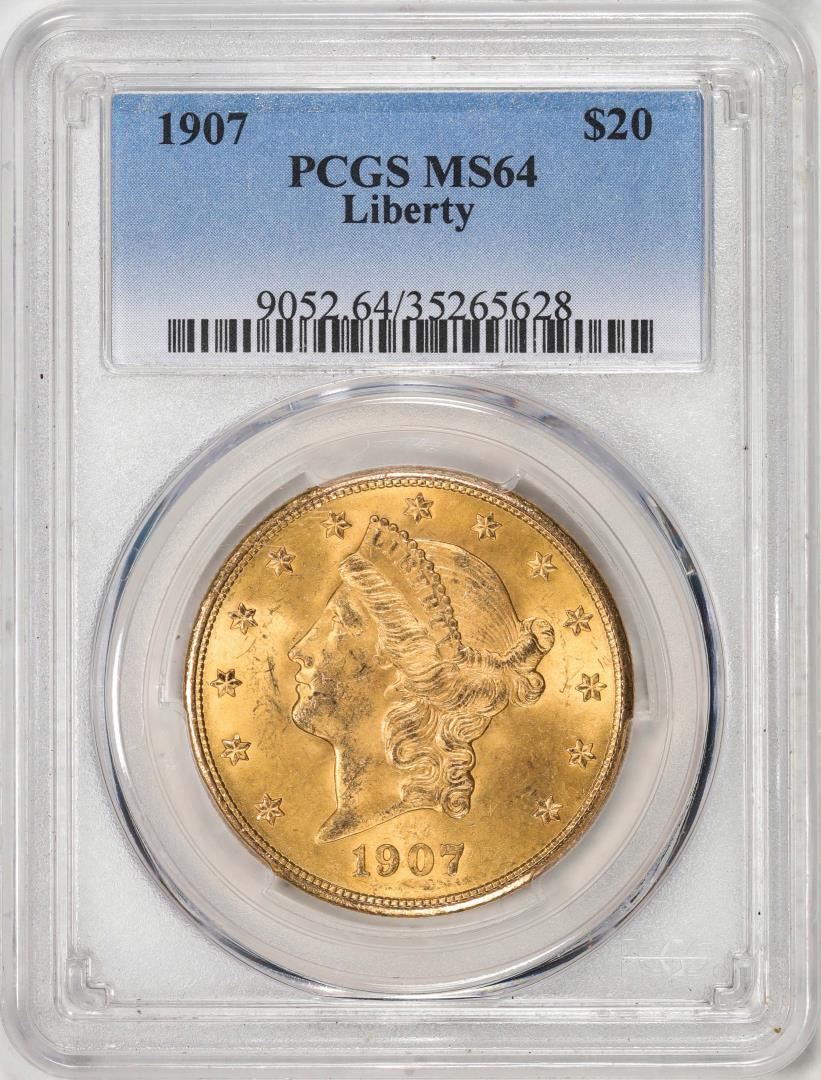 One 1907 $20 Liberty Head Double Eagle Gold Coin PCGS MS64. PCGS Graded.