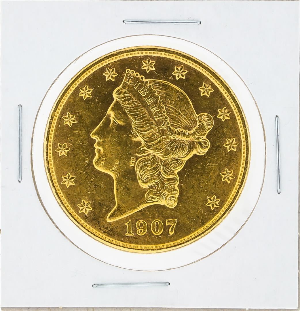 One 1907 $20 Liberty Head Double Eagle Gold Coin.