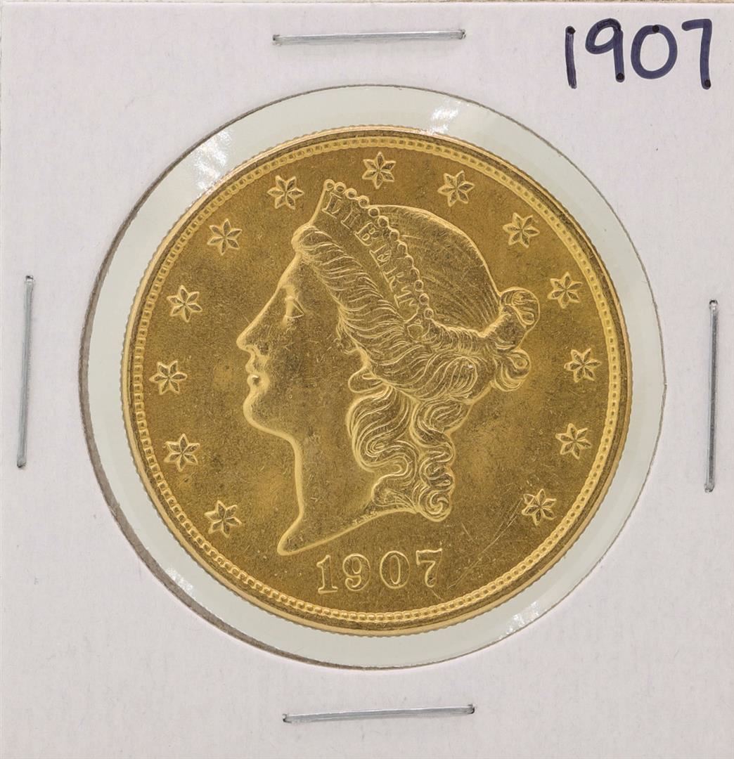 One 1907 $20 Liberty Head Double Eagle Gold Coin.