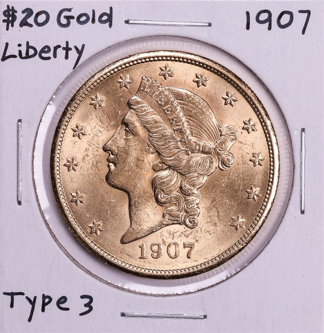 One 1907 $20 Liberty Head Double Eagle Gold Coin.