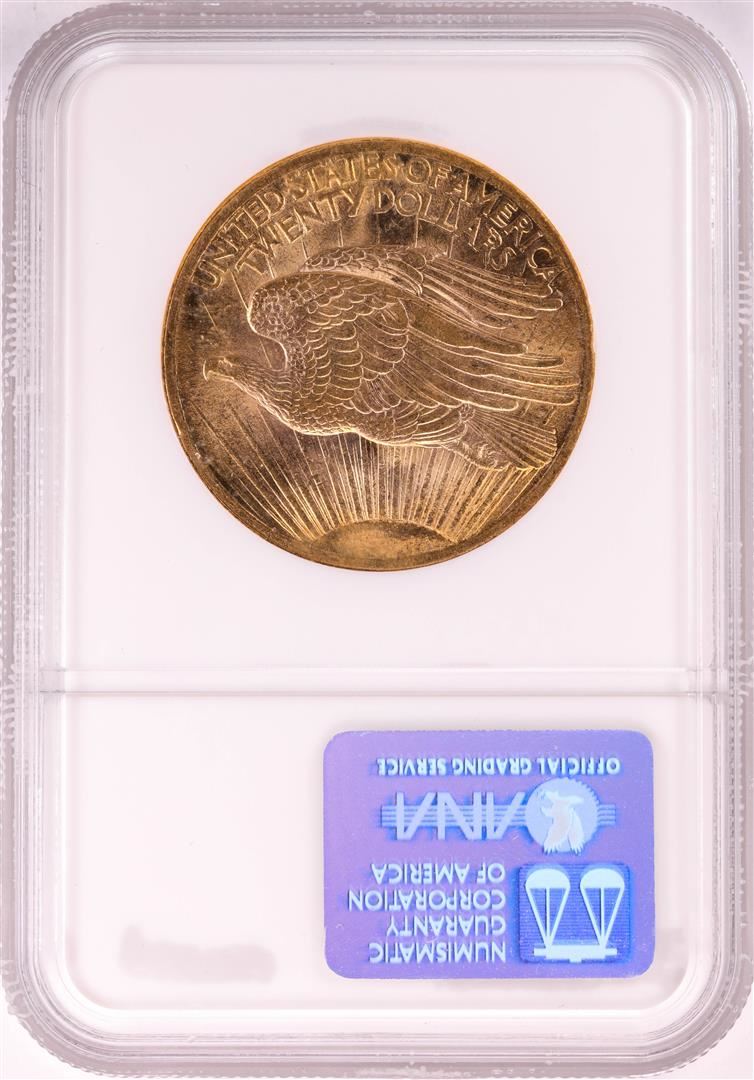 One 1907 $20 St. Gaudens Double Eagle Gold Coin NGC MS62. NGC Certified.